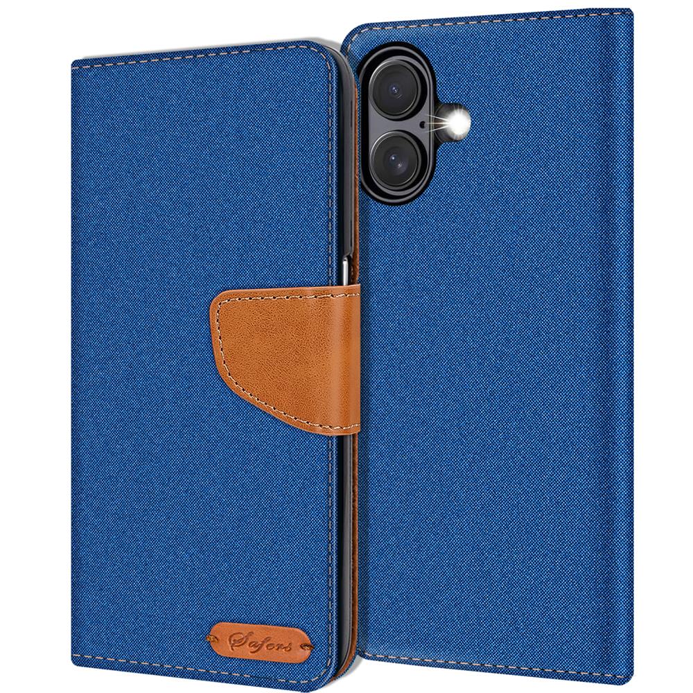 Keine Lust mehr auf Kunstleder oder Plastik? Du möchtest lieber mal was neues ausprobieren? Das Bookcase im trendigen Jeans Design ist ein kompletter Gegensatz zu vielen auf dem Markt erhältlichen Handytaschen. Der Polsterstoff der Außenhülle sorgt für eine angenehme Haptik und verleiht deinem Apple iPhone 17 ein geschmackvolles Aussehen. Die zarten Akzente im cognac-farbenen Kunstleder unterstützen das schicke Design und setzen dein Handy gekonnt in Szene. Die Halteschale aus flexiblem Silikon hält das Gerät fest umschlossen und ermöglicht dennoch die Nutzung aller Anschlüsse und Ports. Das robuste Case sorgt für einen Rundumschutz und sichert neben allen Kanten und Ecken auch das empfindliche Display. Das Material wirkt stoßabweisend und sichert dein Smartphone erfolgreich vor wertmindernden Schäden. Auf der Innenseite bietet das Cover Platz für Kreditkarten und Co, sie fungiert somit als idealer Geldbeutel-Ersatz. Ein weiterer Vorteil dieser stilvollen Handyhülle ist die integrierte Aufstellfunktion.