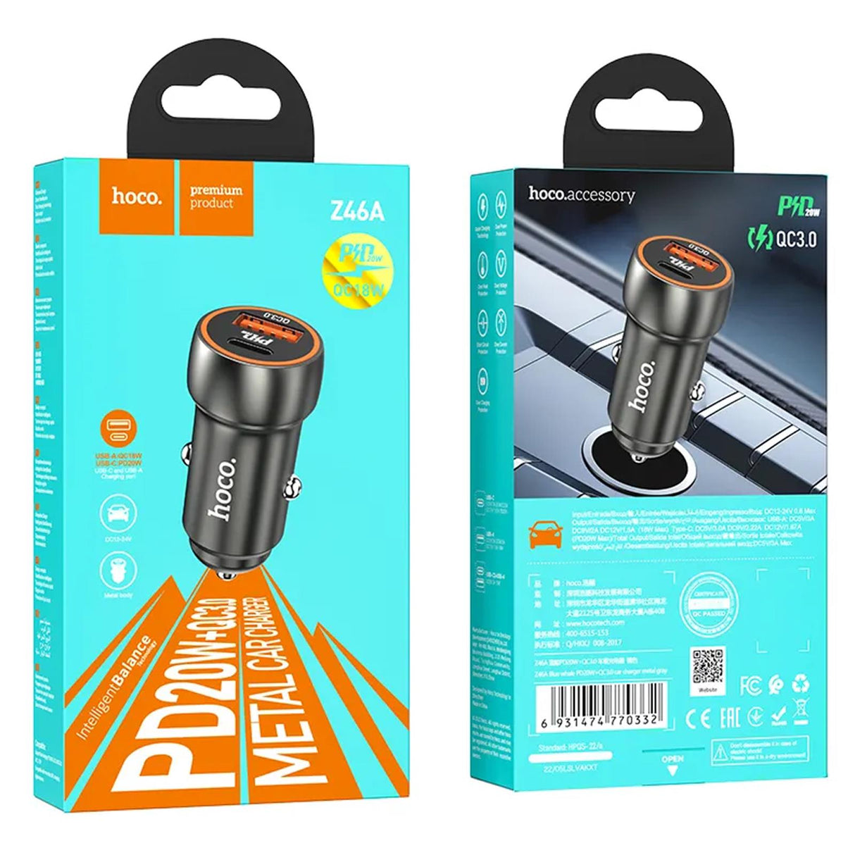 Hoco Kfz-Ladegerät - Z46A - Metal Grau - Solo - Schwarz ist auf Lager und wird versandt, sobald es wieder verfügbar ist