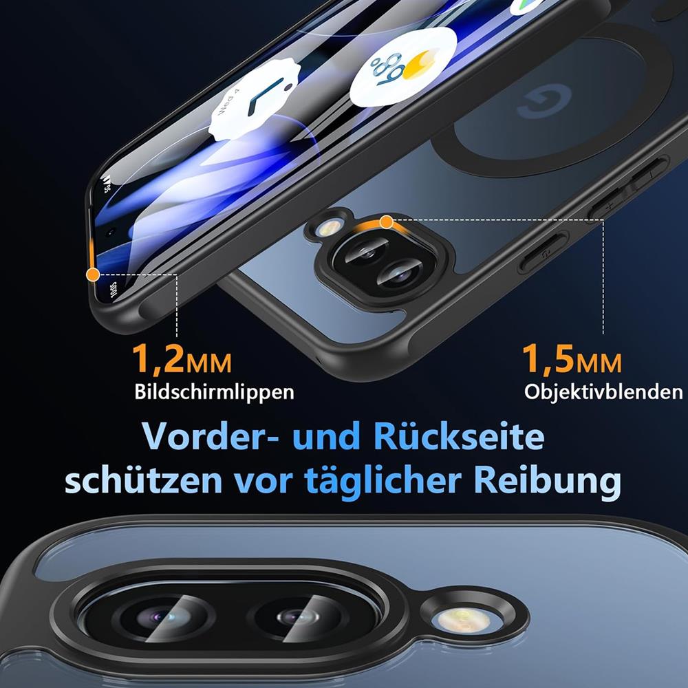 Mit dem Zoya Series Magnet-Case holst du dir zuverlässigen Rundum-Schutz aufs Google Pixel 9a, ohne ihm die Show zu stehlen. Die transluzent-matte Polycarbonat-Rückseite lässt das Pixel-Logo dezent durchschimmern, bleibt dabei kratzfest und vergilbt nicht. Ein passgenauer TPU-Rahmen mit rutschfester Oberfläche schmiegt sich eng an, während verstärkte Air-Cushion-Ecken Aufschläge sicher abfedern.Im Inneren sitzt ein leistungsstarker N52-Magnetring: Einfach auf ein magnetisches Ladepad legen, an die Auto-Halterung ?snappen? oder ein Wallet andocken ? das Gerät hält stabil und lädt kabellos, ganz ohne Kabelsalat. Eine 1,2 mm Kameralippe sowie ein 1,5 mm Displayrand bewahren Linse und Screen vor Kratzern, wenn das Phone auf dem Tisch liegt. Tasten reagieren knackig, alle Ports bleiben frei, 5G-Empfang sowie Qi-Charging funktionieren ohne Leistungseinbußen. Kurz: draufclippen, loslegen, sicher sein.