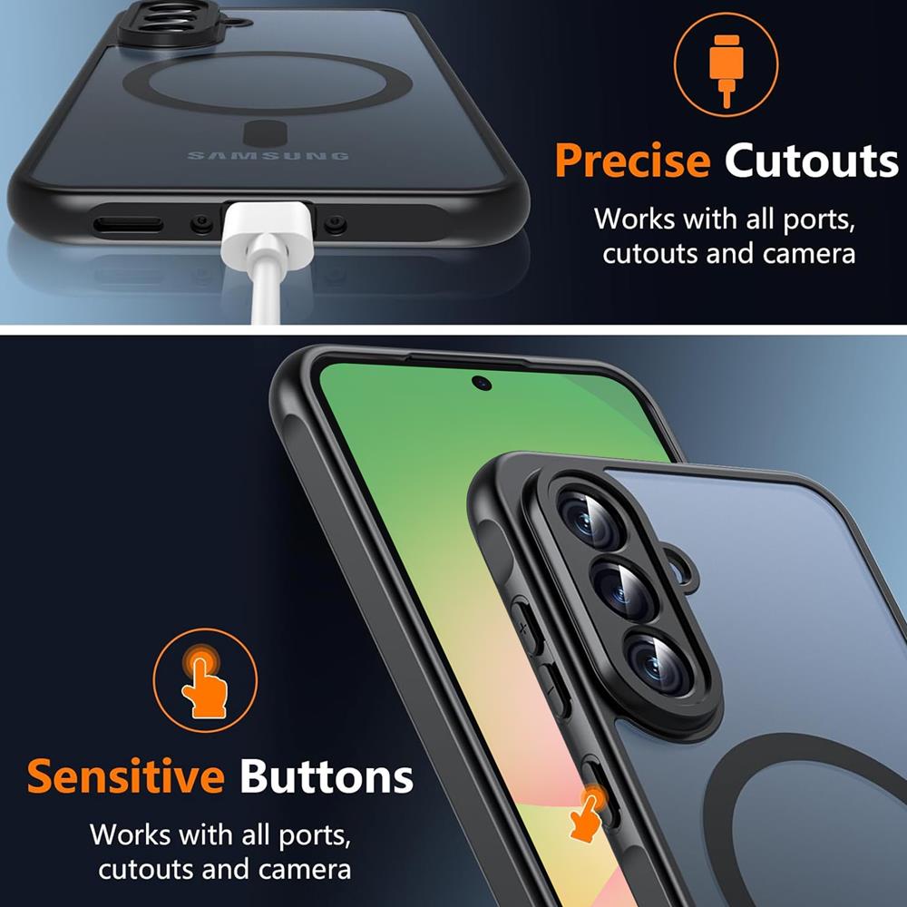 Mit dem Zoya Series Magnet-Case holst du dir zuverlässigen Rundum-Schutz aufs Samsung Samsung Galaxy A16 5G, ohne ihm die Show zu stehlen. Die transluzent-matte Polycarbonat-Rückseite lässt das Samsung-Logo dezent durchschimmern, bleibt dabei kratzfest und vergilbt nicht. Ein passgenauer TPU-Rahmen mit rutschfester Oberfläche schmiegt sich eng an, während verstärkte Air-Cushion-Ecken Aufschläge sicher abfedern.Im Inneren sitzt ein leistungsstarker N52-Magnetring: Einfach auf ein magnetisches Ladepad legen, an die Auto-Halterung ?snappen? oder ein Wallet andocken ? das Gerät hält stabil und lädt kabellos, ganz ohne Kabelsalat. Eine 1,2 mm Kameralippe sowie ein 1,5 mm Displayrand bewahren Linse und Screen vor Kratzern, wenn das Phone auf dem Tisch liegt. Tasten reagieren knackig, alle Ports bleiben frei, 5G-Empfang sowie Qi-Charging funktionieren ohne Leistungseinbußen. Kurz: draufclippen, loslegen, sicher sein.
